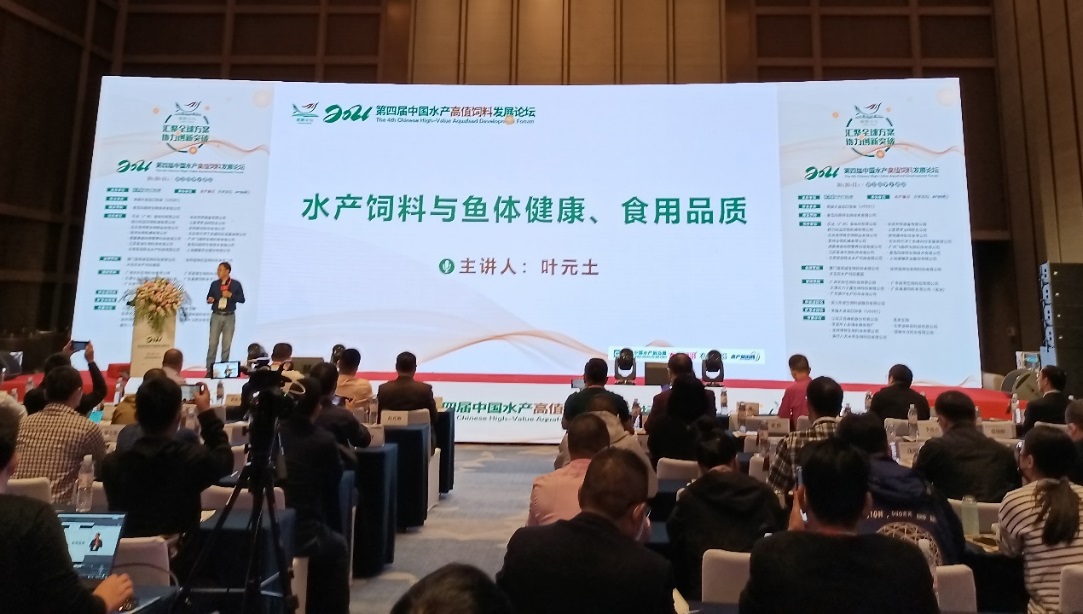 10月10-11日,鲲鹏论坛——2021第四届中国水产高值饲料发展论坛于青岛举行。本次论坛以“汇聚全球方案·协力创新突破”为主题,以主题演讲和产学研互动探讨为主要形式,500多名国内外水产饲料行业的产学研精英汇聚现场,分享智慧,共话水产饲料行业前景。中国工程院院士麦康森作大会致辞:“高值饲料,是最前沿科研成果的产品化,是行业走差异化竞争路径的支撑,是产-学-研结合的前沿阵地。发展高值饲料,让我们水产养殖业更健康,也更绿色!”实验室主任叶元土教授主持会议互动论坛环节并作大会报告。