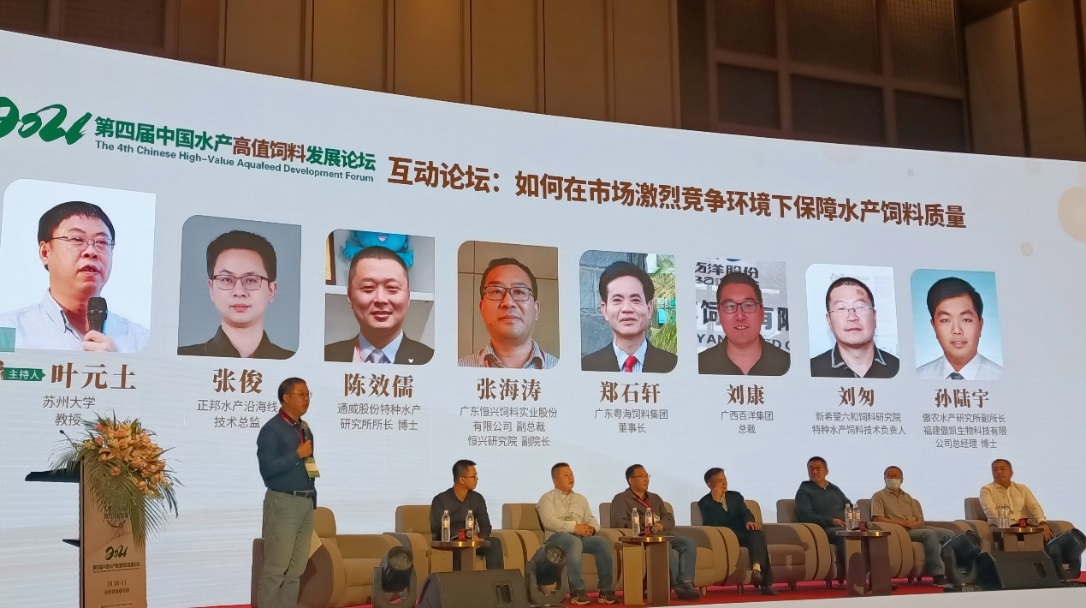 交流互动论坛“如何在市场激烈竞争环境下保障水产饲料质量”由叶元土教授主持。本次交流互动环节围绕在当前激烈的市场竞争环境下,饲料企业就保障水产饲料的质量将有何作为作出了热烈的讨论,多位饲料企业的董事长、总经理、副总裁或技术总监等参加了现场互动和解疑,并分享了企业的经验和担当。实验室已毕业硕士、正邦水产沿海线的技术总监张俊以互动嘉宾的身份参加了本次交流活动。