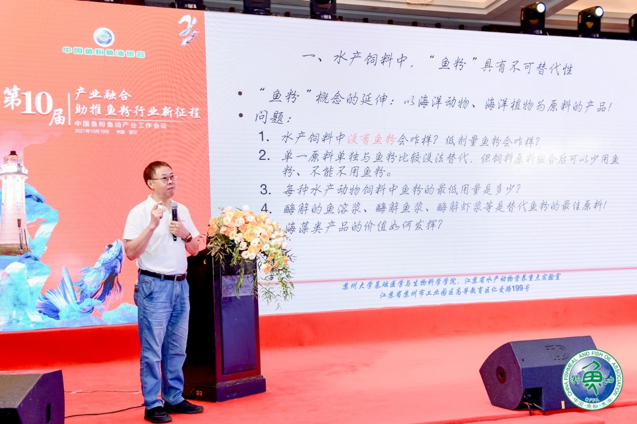 由“中国鱼粉鱼油协会”组织并承办的“第十届中国鱼粉鱼油产业工作大会”于2021年10月9日-12日在云南丽江举行。由中国鱼粉鱼油生产企业、鱼粉鱼油进出口企业和饲料企业的160多位代表参加了大会。大会首先由“中国水产品流通与加工协会”会长崔和致开幕词,随后由实验室主任叶元土教授做了“技术创新,开发好、利用好有限的海洋生物资源”的大会主题报告。