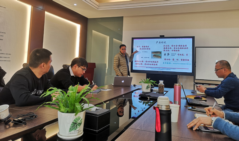 深入开展校企产学研合作,为地方经济作出贡献,是实验室科研工作的重要组成之一。本年度,实验室与菡萏生物(苏州)科技有限公司合作,共同进行黑水虻饲料产品的研发工作。12月7日上午,《黑水虻饲料产品开发及其在水产饲料中的应用研究》进展交流会在菡萏生物举行,实验室全体老师参加会议。参加会议交流的还有菡萏生物董事长肖斌、副总经理肖辉、苗毓军、公司技术骨干和华中农业大学郑龙玉教授等。