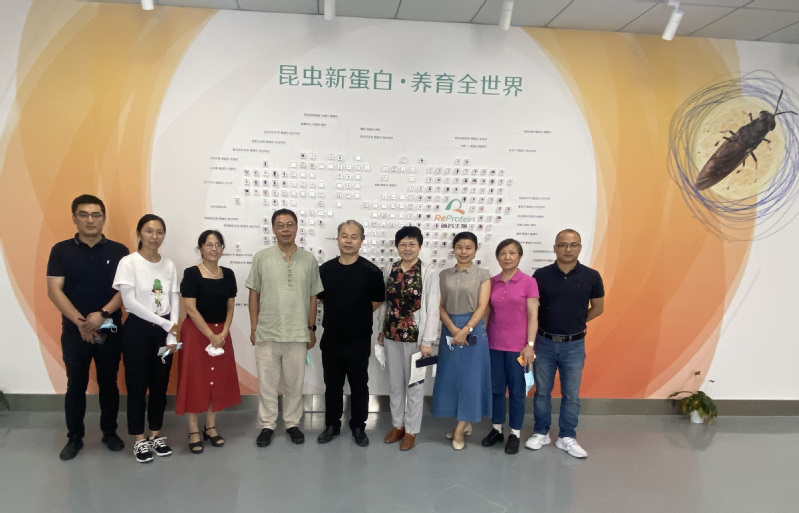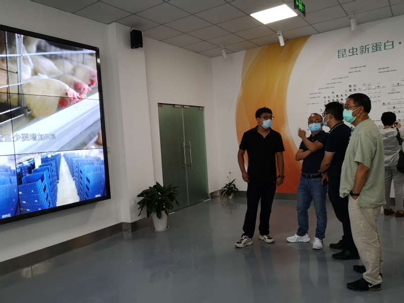 饲料原料是水产配合饲料的物质基础,动物蛋白在饲料原料中占有举足轻重的地位,而昆虫蛋白,除了可满足饲料中常规动物蛋白的需求外,还含有其独特的功能性成分,为养殖动物的免疫防御增加了强有力的屏障;另外,在水产动物的养殖过程中,因昆虫蛋白的加盟可有效减少相关防病药物的投入,一定程度上提升了水产品的品质和安全。提升鱼、虾、蟹的品质,保障健康养殖,把控饲料原料,一直以来是实验室努力的方向。8月10日,在实验室主任叶元土教授的带领下,实验室全体成员参观了菡萏生物科技有限责任公司,并进行了深入的交流。