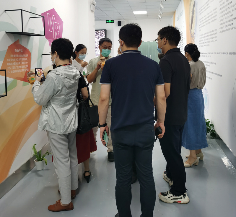 在位于苏州高新区的菡萏生物黑水虻养殖厂区,在杨垚总经理的陪同下,老师们参观了黑水虻的养殖流程、发酵虫浆的制备工艺及幼虫的微波干燥工艺。接着,在菡萏生物公司总部与肖斌董事长及企业的中层以上骨干进行了深入的交流,现场就企业提出的相关问题,如用黑水虻虫体替代河蟹养殖中冰冻鱼的合适比例、黑水虻投喂过程中的漂浮问题等做出了解答,并就下一步的合作达成了初步意向。